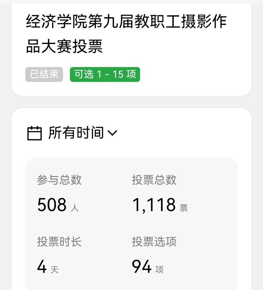 活动期间,共收到94幅参赛作品。这些作品题材多样、视角独特,生动展现了祖国的壮美风光、人民群众奋发向上的精神风貌,以及新时代国家建设的辉煌成就,深刻体现了社会主义核心价值观与人民对幸福生活的追求。比赛通过网络匿名投票的方式,评选出了一等奖、二等奖、三等奖,并为获奖者颁发了奖品。