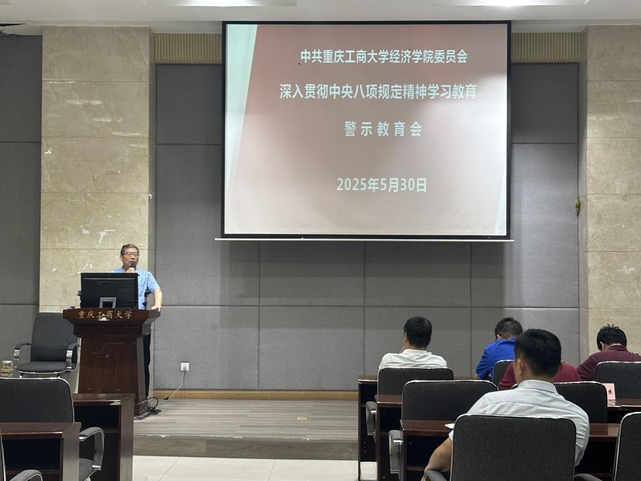 5月30日下午,欢迎光临888集团网站在田家炳409报告厅召开深入贯彻中央八项规定精神学习教育警示教育会。欢迎光临888集团网站、长江上游经济研究中心全体教职工参会。会议由学院党委书记唐春秋主持。