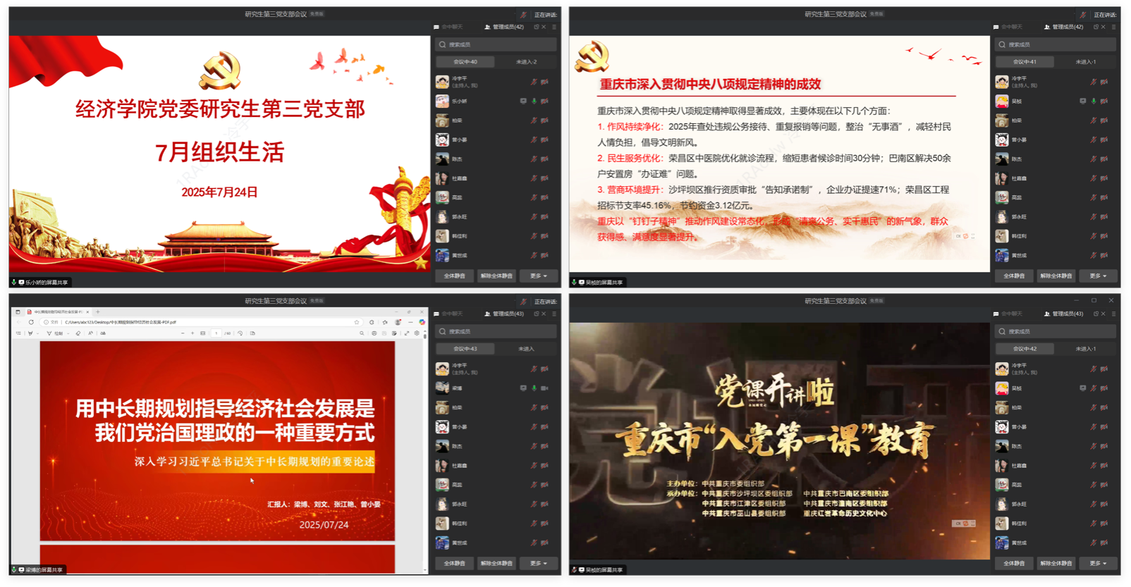 2025年7月24日,欢迎光临888集团网站党委研究生第三党支部通过企业微信在线开展7月组织生活,全面落实深入贯彻中央八项规定精神学习教育,会议由支部宣传委员乐小娇主持。
