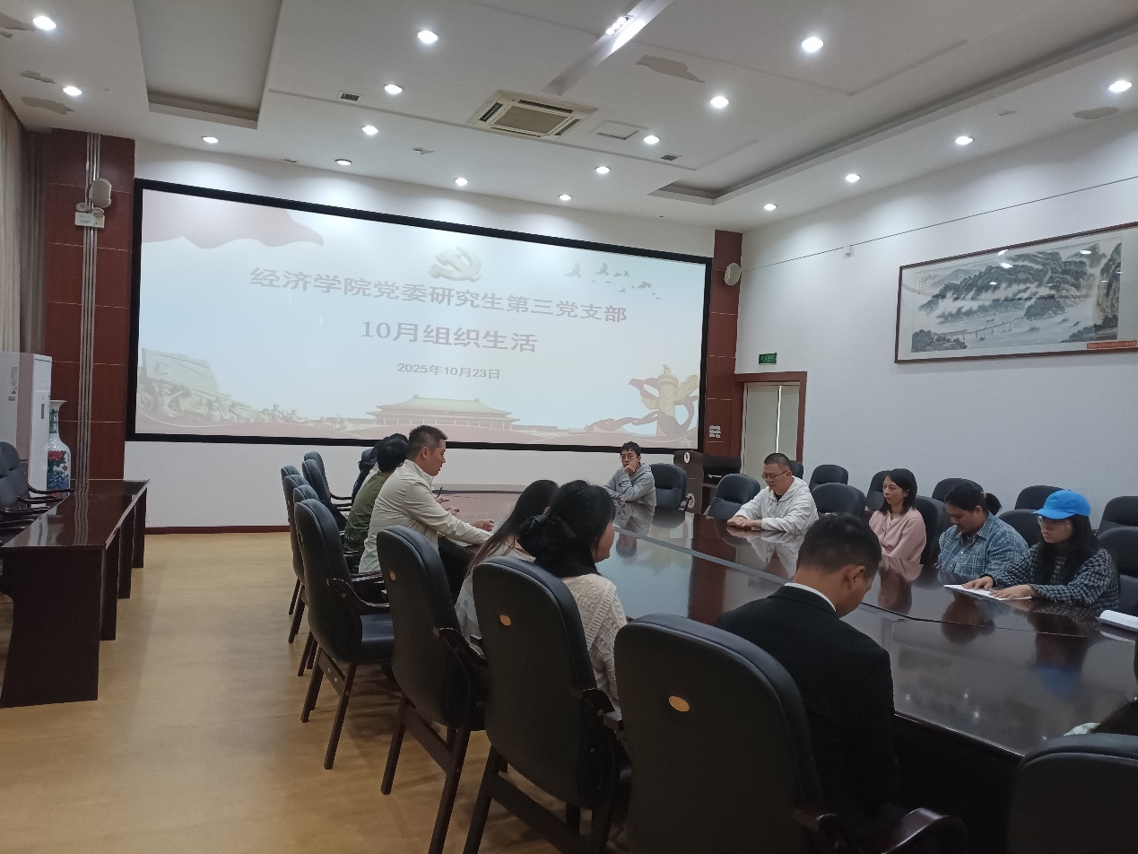 2025年10月23日,欢迎光临888集团网站党委研究生第三支部在田家炳书院6楼会议室开展10月组织生活,会议由支部书记刘晗主持。