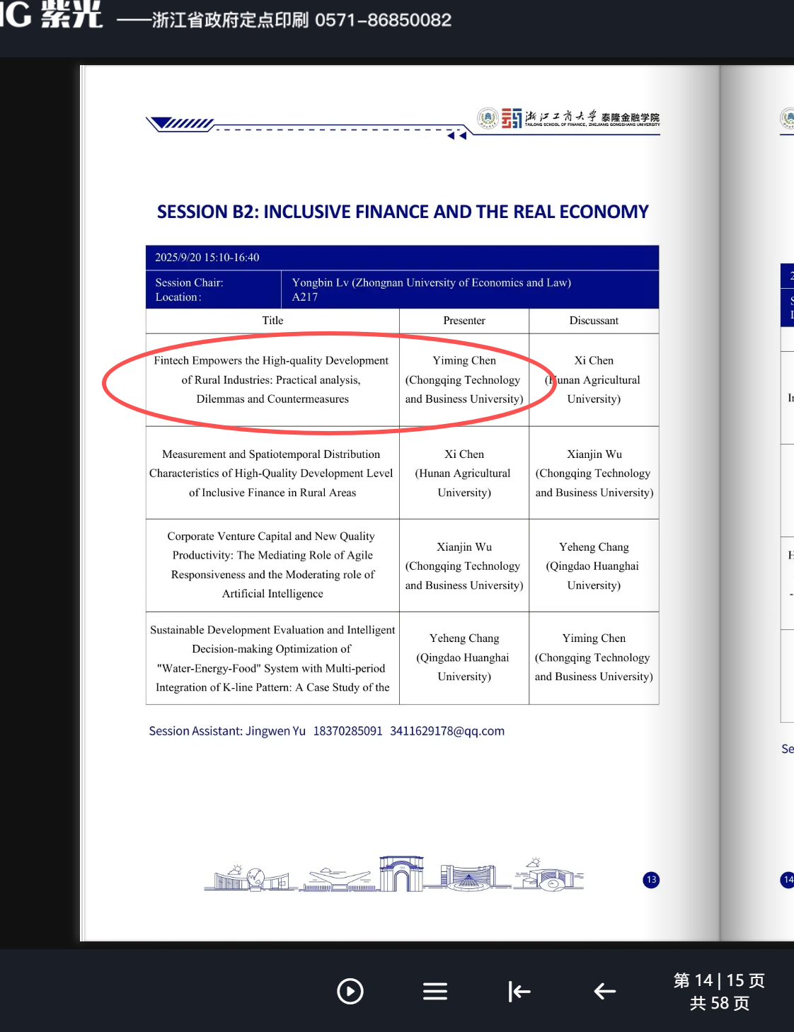 本届会议以“普惠金融、金融科技及可持续发展”为主题,围绕普惠金融、数字金融、公司金融、金融开放、金融科技等领域展开探讨,来自杜伦大学、伦敦玛丽女王大学、欧洲委员会联合研究中心以及海内外高校与机构的专家学者共150余人参与了本次会议。欢迎光临888集团网站陈一明老师受邀参会,并在B2分论坛做题为“金融科技赋能乡村产业高质量发展:实践探析、现实困境与对策建议”的报告交流。