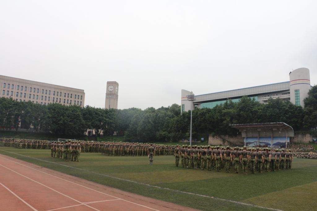 早晨,大家怀着无比激动和紧张的心情来到了训练场,由于是第一天军训,部分同学没来得及吃早饭,导致训练开始后没一会儿就因身体原因晕倒,友情提醒同学们一定要记得要好好吃早饭,为更好的完成训练任务做好准备。在中午结束训练时,各营队进行了汇报表演,一上午的训练初见雏形。只见训练场上方队整齐,精神饱满,步伐矫健,口号响亮,展现了新时代大学生的昂扬姿态。各个营队的初次表现受到了教官们的认可,短短一上午就已经全身心的投入到了军训生活中,这样的态度也受到了总教官的表扬。持之以恒,工商学子必能在这次军训最后的汇报表演中交出一份令教官和辅导员欣慰、令自己满意的答卷。下午的训练仍如火如荼的进行着,同时由几名来自于“飞虎队”的跟训队员作为站岗员,把控好出入关口,维持场上的出入秩序,用自己的方式参与到军训中。在夕阳的余辉中,我们看到的是教官严格训练的场面,是同学们刚毅充满活力的脸庞,同时也感受到了辅导员教师们对参训学员的期望与关心。每个人都投入到练习中,即使汗水划过脸颊也要坚持,专心地听着教官的指令,严阵以待。