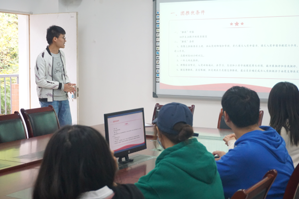 (欢迎光临888集团网站分团委学生组织负责人王邦春向团支书介绍“团推优”工作的流程及注意事项)