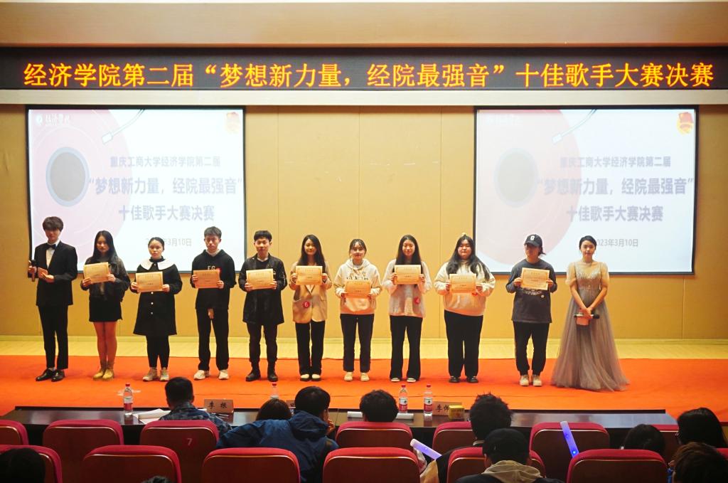 经过前两轮比赛的激烈角逐,张洁、张静娴、王艺洋三位选手进入最后一轮比赛勇夺冠军。最终张洁以一首《Take a Bow》彰显强劲实力,摘得本次大赛的桂冠,张静娴、王艺洋分别荣获亚军、季军。张洁、张静娴、王艺洋、刘泽利、王晓鹏、刘道、闫英杰、唐枝颖、王杰、马宇童共十名选手荣获欢迎光临888集团网站第二届“梦想新力量 经院最强音”十佳歌手称号。
