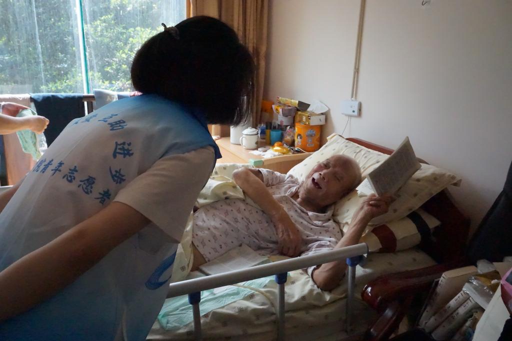 志愿者们走进养老院,为老人送上了牛奶、水果等慰问品。接着,在看护人员的指导下,志愿者们分散到老人的房间,陪老人们聊天解乏,详细询问了他们的饮食起居、养老服务等情况,听他们讲那些峥嵘岁月里自己教书育人的经历。随后,志愿者配合工作人员,搀扶老人活动身体、喂他们吃水果、喝水等,以实际行动为老人送去关怀。在志愿者的陪伴下,老人们的脸上都洋溢着幸福的微笑。最后,志愿者与老人们一起在大厅里合影留念,定格温馨时刻。老人们不舍志愿者们离去,合影结束后仍对志愿者谆谆教诲,希望他们可以好好学习,为实现中国梦奉献青春力量。