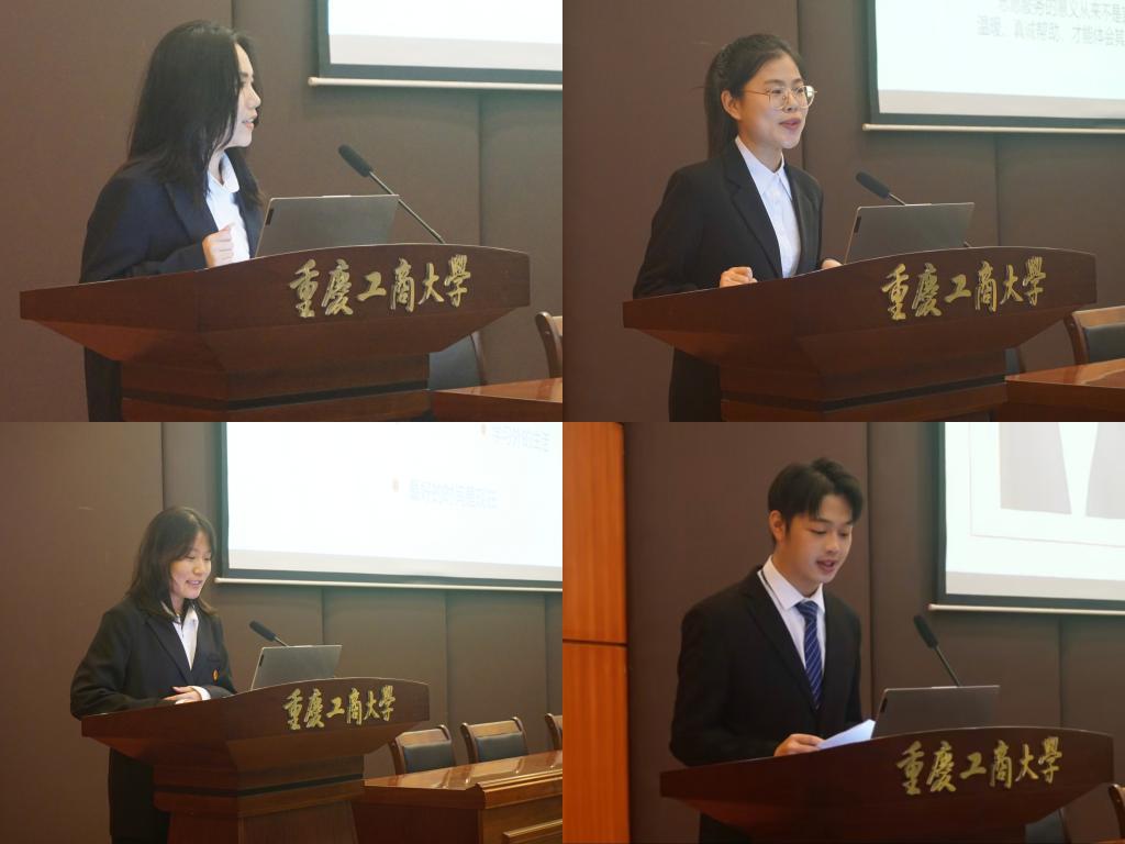 晚上19点,宣讲会正式开始,活动中,21财政一班黄妍菲和20经济三班费吉欢通过讲述在学生组织的任职经历,分享在学生工作中的收获与成长,鼓励同学们积极投入学生工作和校园活动,勇于锻炼自我;21税收二班李雅晴和20贸经二班秦梦莙结合自身学习经历,讲述如何合理规划时间及高效率学习,鼓励同学们积极进取,明确自身目标并付诸努力;20国贸三班时梓玮和21经济三班魏浩楠分享了他们的校内外实习实践经历,鼓励同学们积极参与志愿服务、专业实习和社会实践,在实践中长见识、长才干;20国贸二班方磬音和20贸经二班余明通过分享各自的学科竞赛获奖经历,为同学们积极参加各类学科竞赛提供了经验指引。宣讲结束后,现场观众踊跃发言,对宣讲团成员进行提问,宣讲团成员对“如何对抗焦虑”“如何平衡学习、学生工作和娱乐时间”等问题进行了耐心解答。