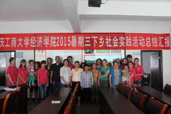 活动中,实践团成员代表杨娟通过PPT针对本次三下乡进行了总结汇报。本次实践活动形成的蓝莓产业发展和污水处理厂两份调研报告集聚了实践团所有同学的努力;市民学校、自行车环保行、金佛山环保快闪T台秀等活动获得了村民、游客的一致好评;不仅如此,成员们还为铁桥村制作了“南川生态大观”微信公众平台,促进当地经济的发展。