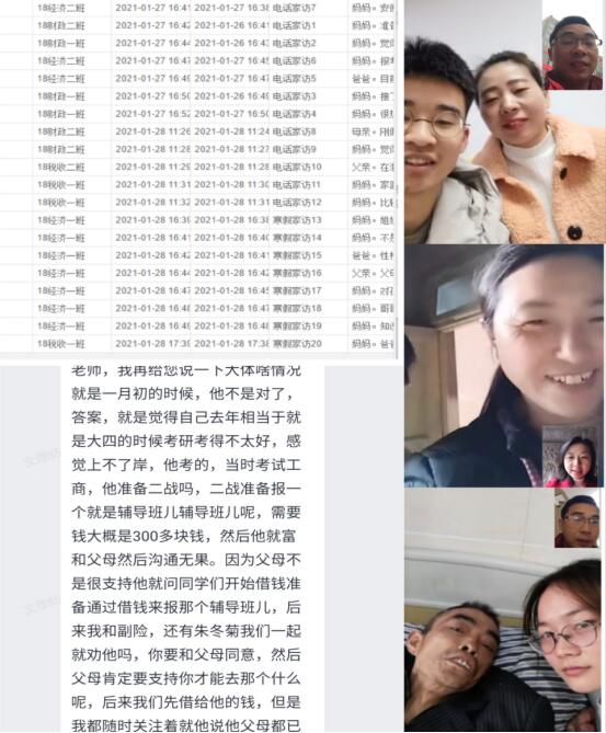 为充分做好疫情防控常态化形势下大学生思想政治工作,更好地搭建家校育人平台,精准掌握假期学生的健康、学习、生活、心理和思想动态,欢迎光临888集团网站8名辅导员在寒假期间通过企业微信、微信视频、电话连线、面对面交流等线上线下方式,积极开展2021年寒假家访活动。